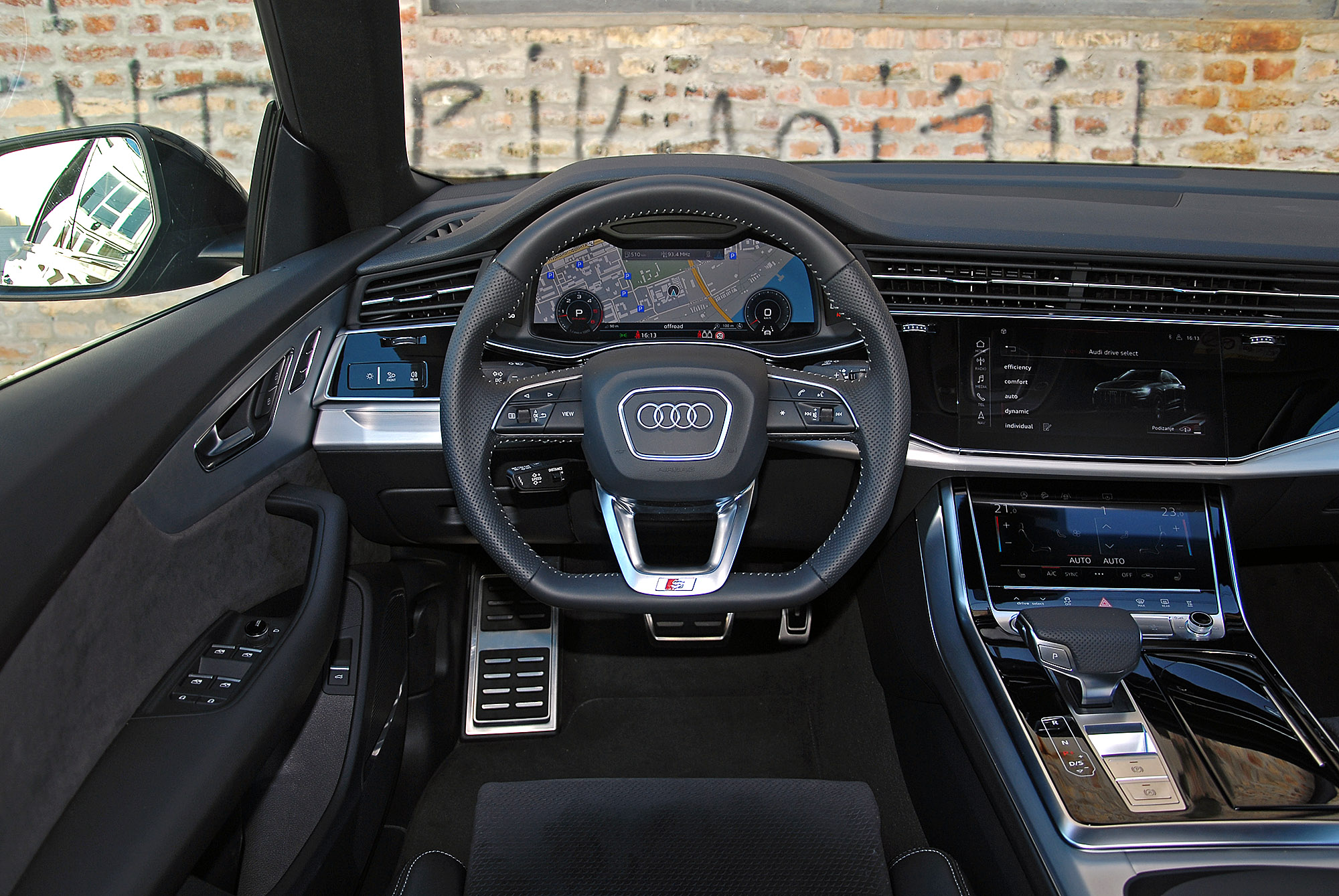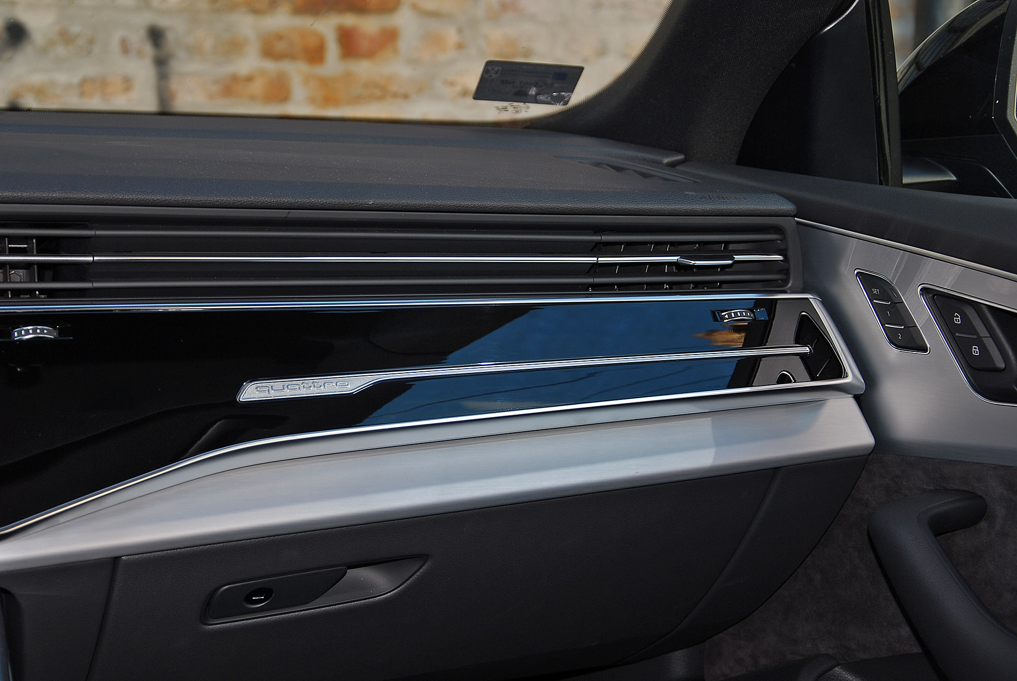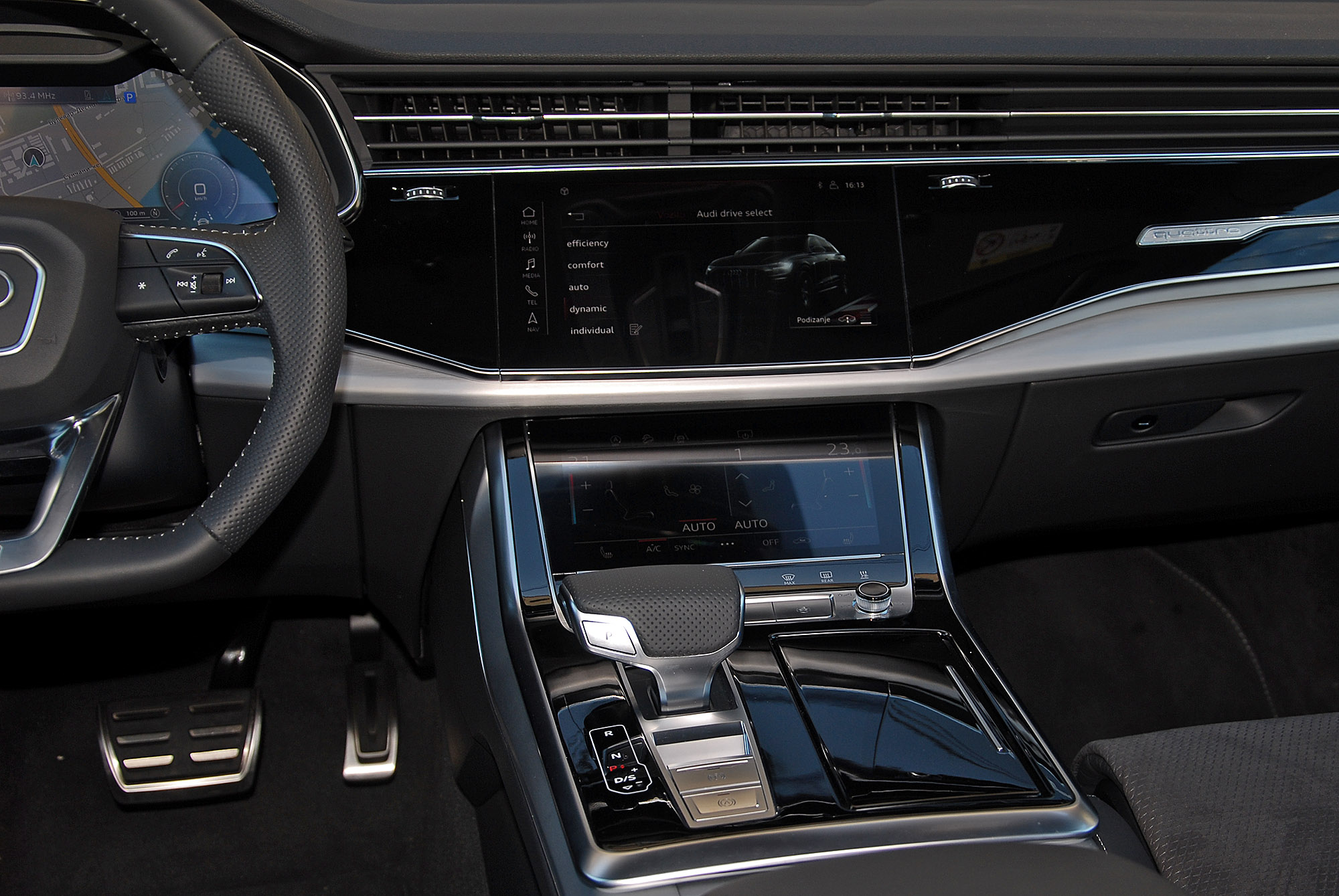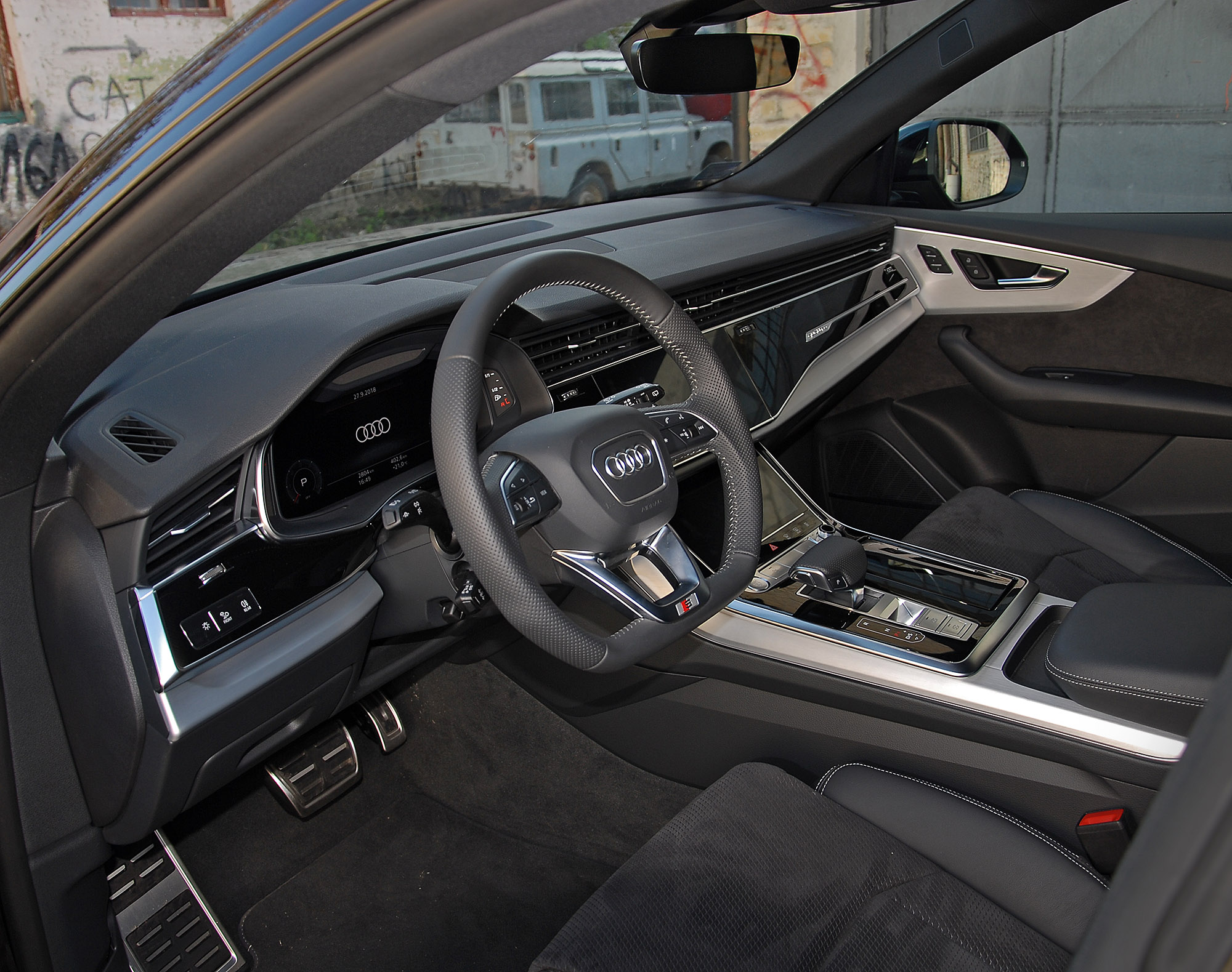 Što se unutrašnjosti tiče, rekao bih da je stvar već viđena ali i lagano unapređena. Svi sistemi i logika funkcionisanja iz A6 i A8 su evidentni. Moram pak napomenuti da je Q8 ponudio mnogo više prostora ali i veliku površinu centralne konzole presvučene nepraktičnom površinom u crnoj lak klavir izvedbi.