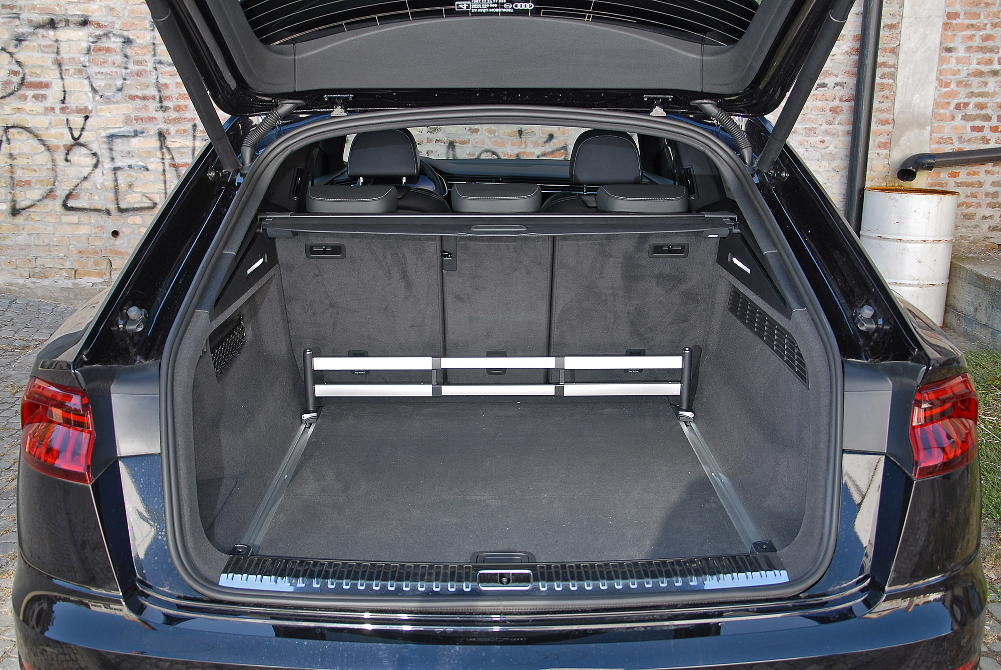 Stvar za Audi Q8 obilato vadi zapremina prtljažnika koja meri 605 litara zapremine. Takođe je evidentan i nedostatak praktičnih ostava za sitnice. Jednostavno, kao da su na njih zaboravili.