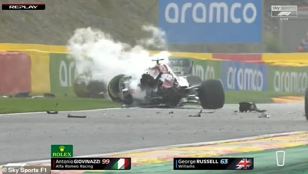 Drugu godinu zaredom, Đovinaci je izgubio kontrolu nad svojom Alfom na izlazu iz Fagnes šikane, udarivši u barijere, što je pored krhotina na stazu poslalo i zadnji točak, koji se našao na putanji Williamsa Džordža Rasela.