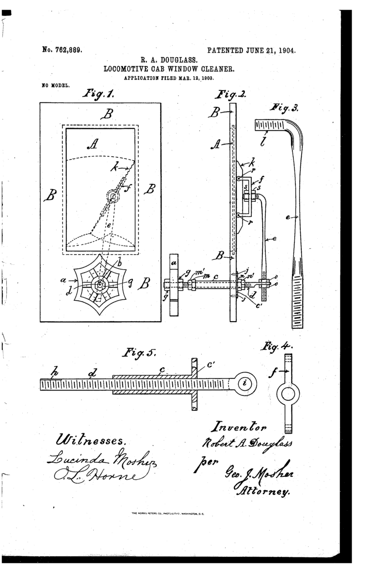 Sličan uređaj je registrovan tri meseca pre patenta Andersonove, a reč je o rešenju Roberta A. Daglasa, koji je podneo zahtev za patent „brisača prozora kabine lokomotive“, 12. marta 1903.