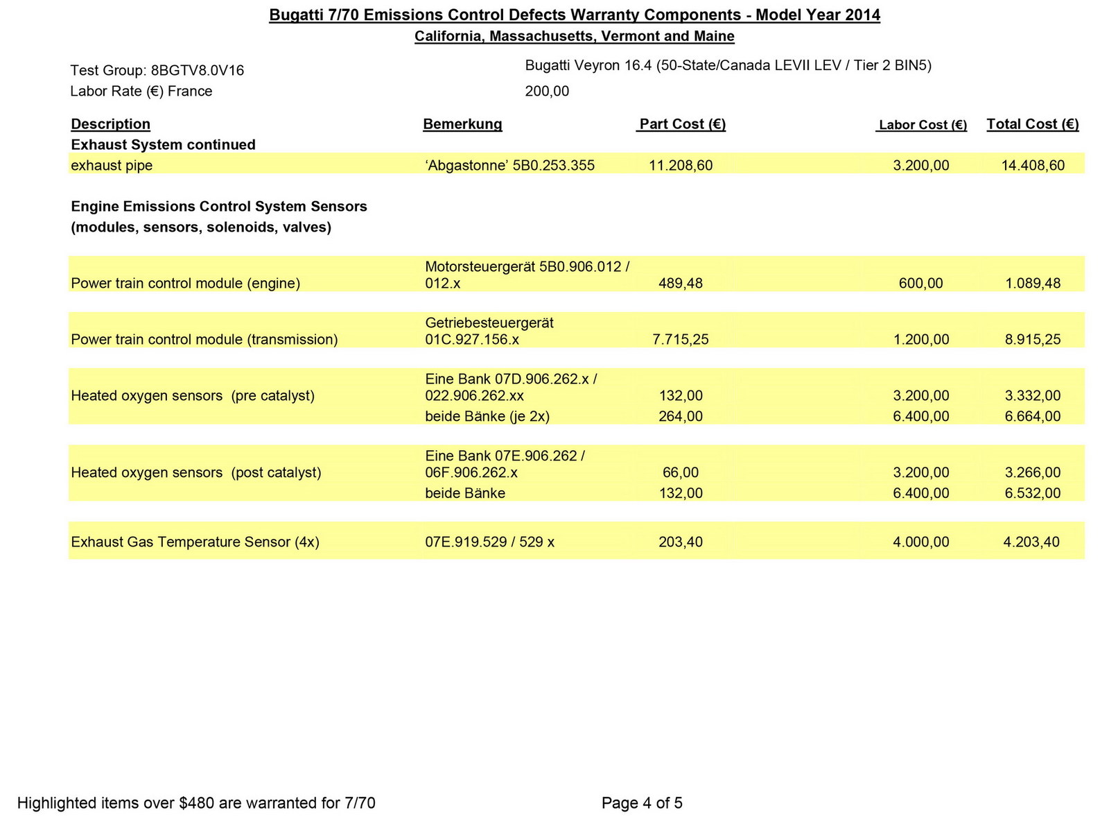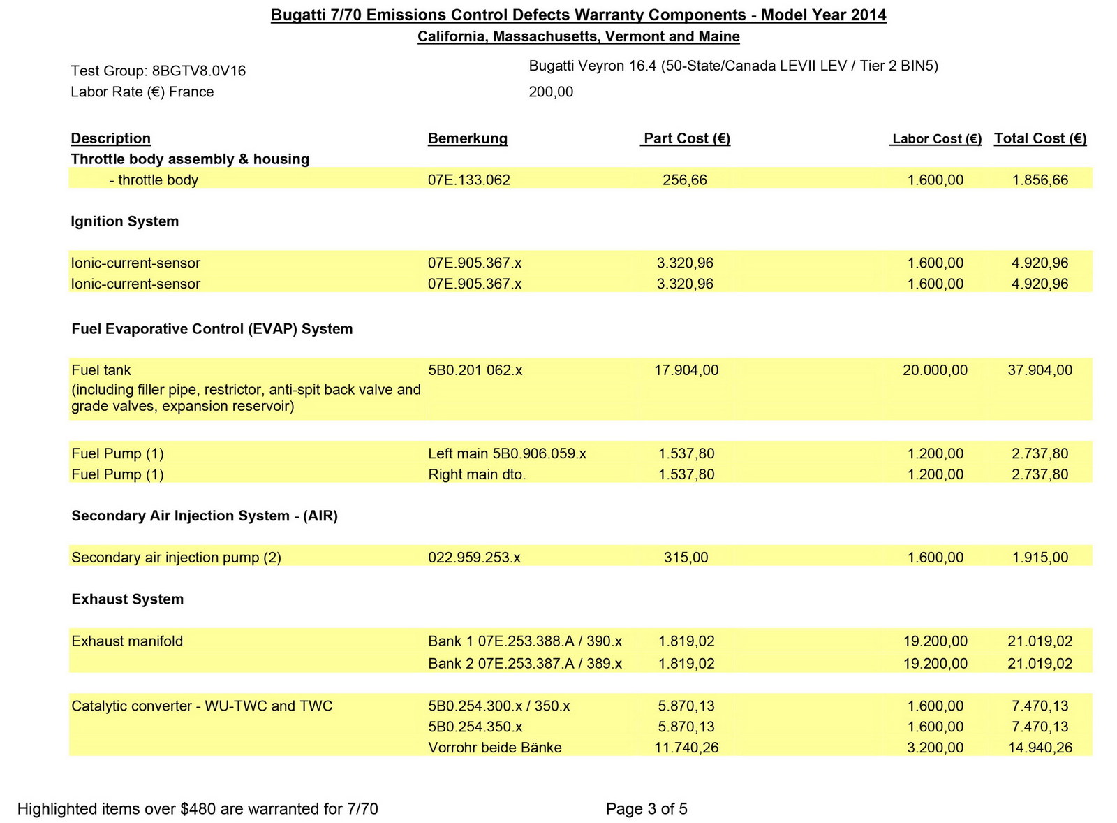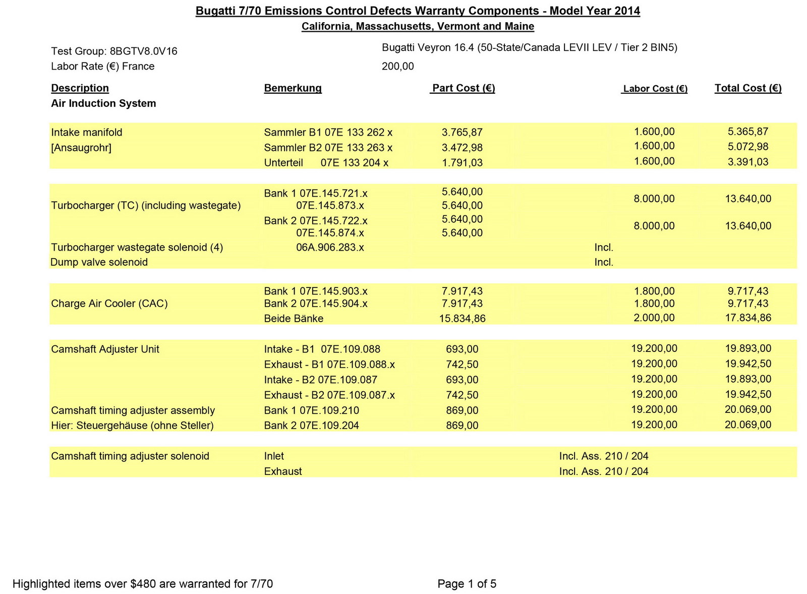 Međutim, zahvaljujući jednom dokumentu iz 2014. godine koji se pojavio na internetu, sada imamo uvid u to koliko koštaju neki delovi za ovi automobil, ali i koliko košta njihova instalacija od strane ovlašćenih Bugatti servisera.