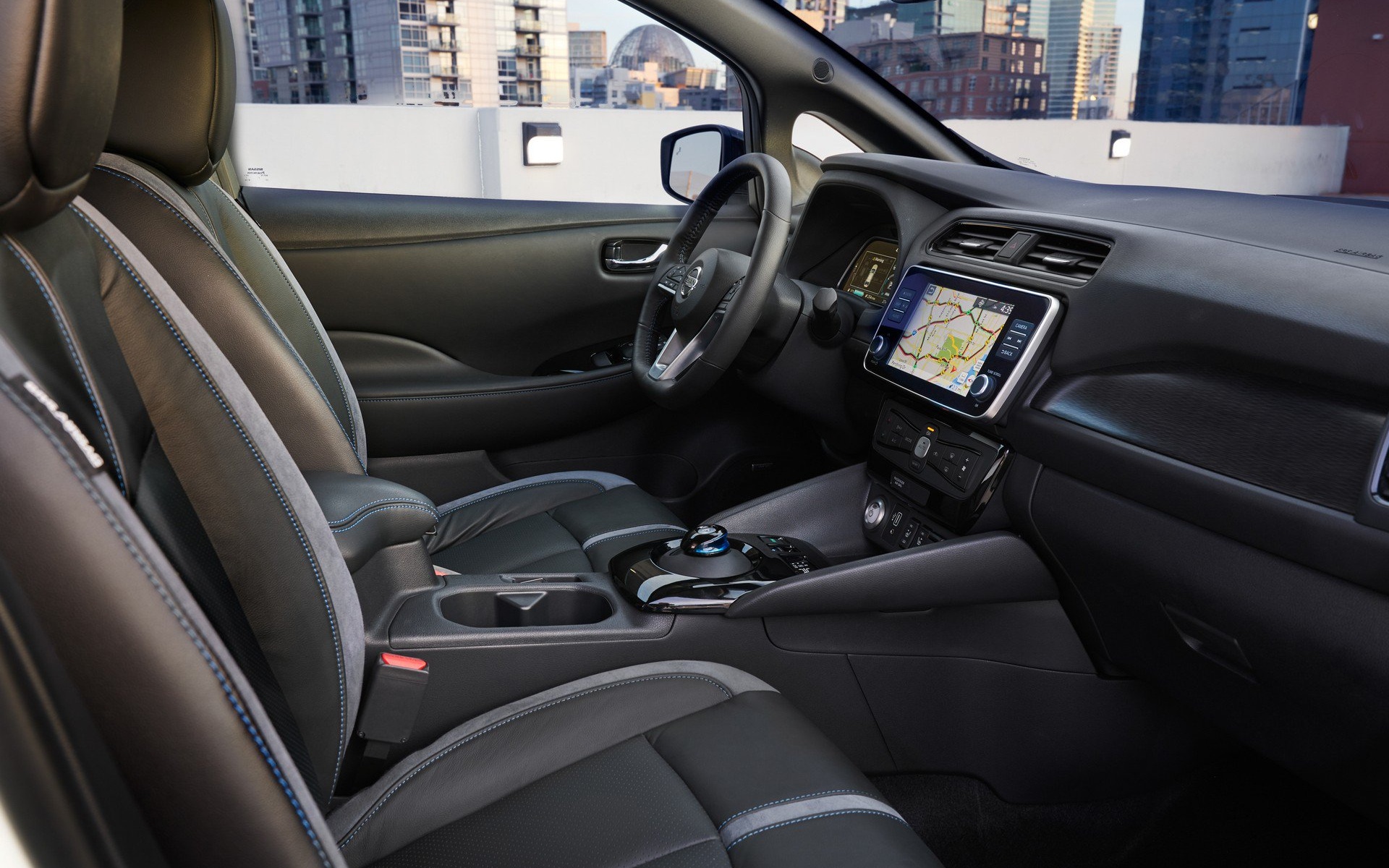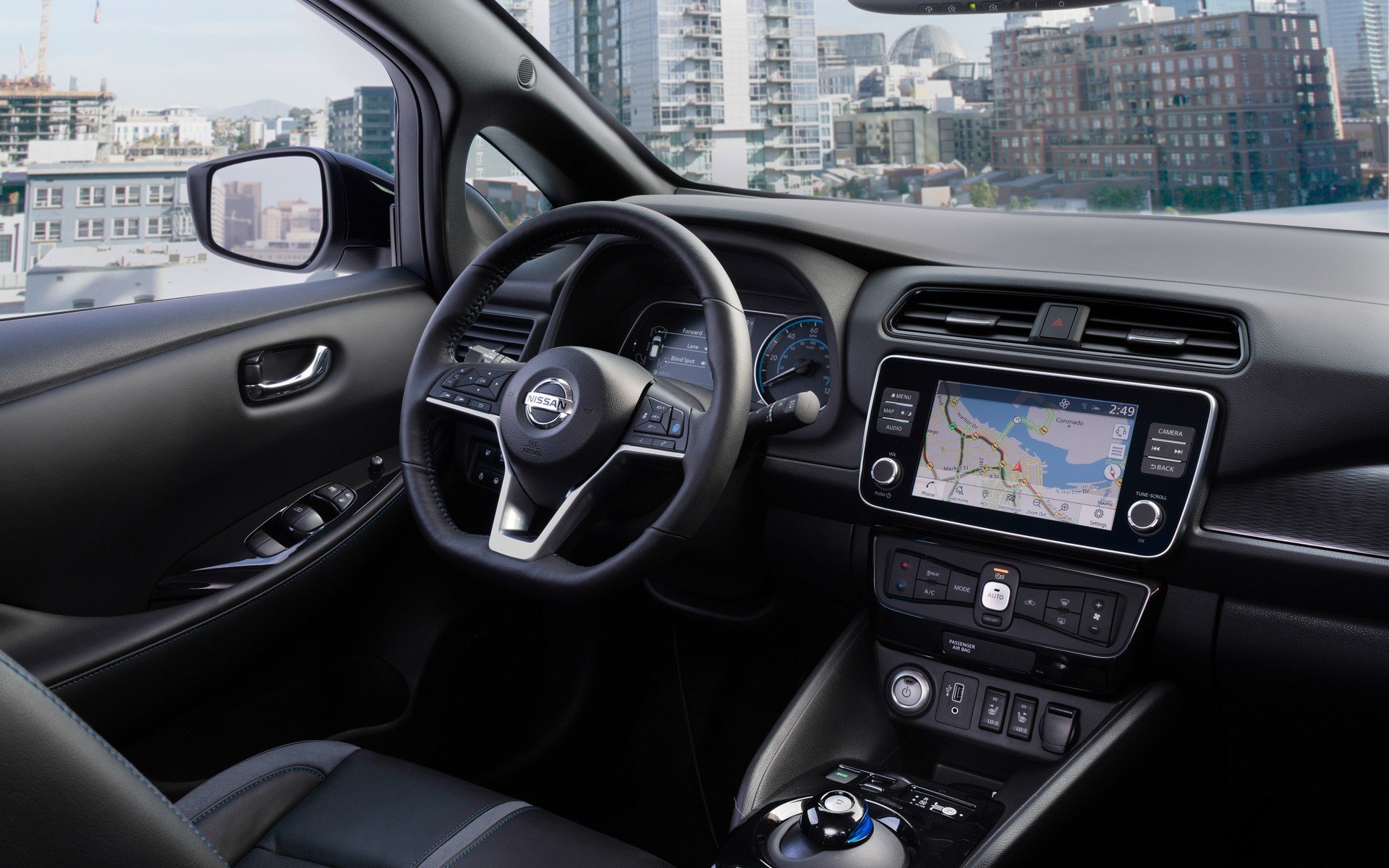 Kada je reč o entereijeru, Leaf E+ ima ekran infotejnmnet sistema dijagonale 8 inča. On se može povezati sa telefonom. Tu je i unapređena navigacija.