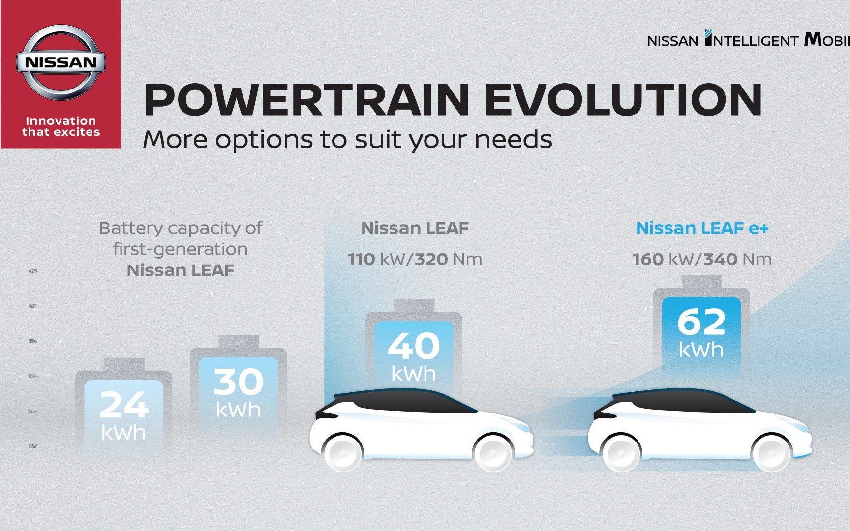 Novi Nissan Leaf E+ ima litijum-jonsku bateriju kapaciteta 62 kWh zahvaljujući kojoj može da pređe i do 363 kilometara puta. To je za 122 kilometara više od standardnog Leaf modela, što bi trebalo da doprinese i boljoj prodaji.