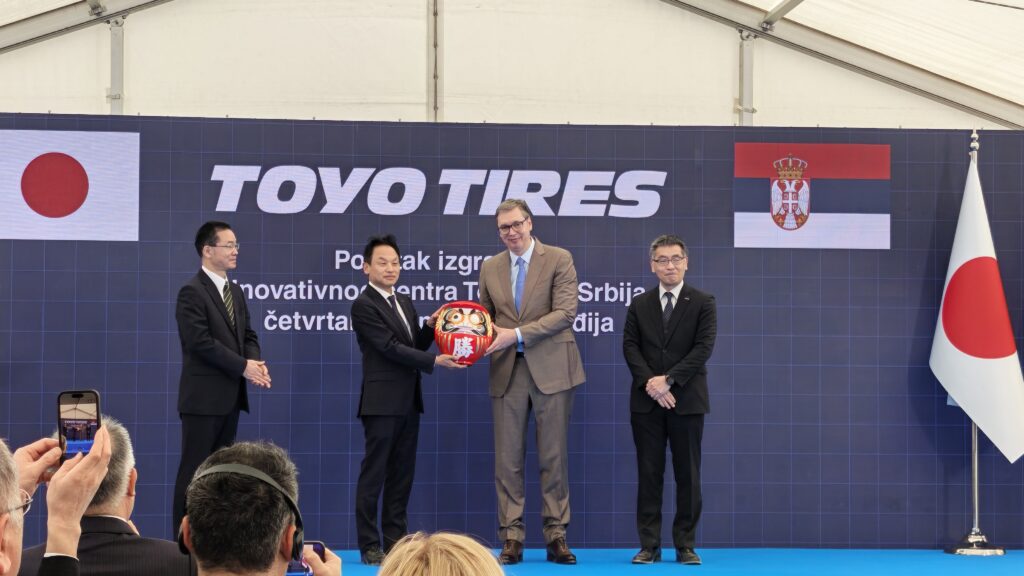 Danas je u Inđiji u prisustvu rukovodstva Toyo Tires i Otpravnika poslova Ambasade Japana i najviših državnih zvaničnika položen kemen temeljac za izgradnju Inovativnog Centra Toyo Tires Srbija koji će zapošljavati visoko stručne kadrove u oblasti razvoja pneumatika.