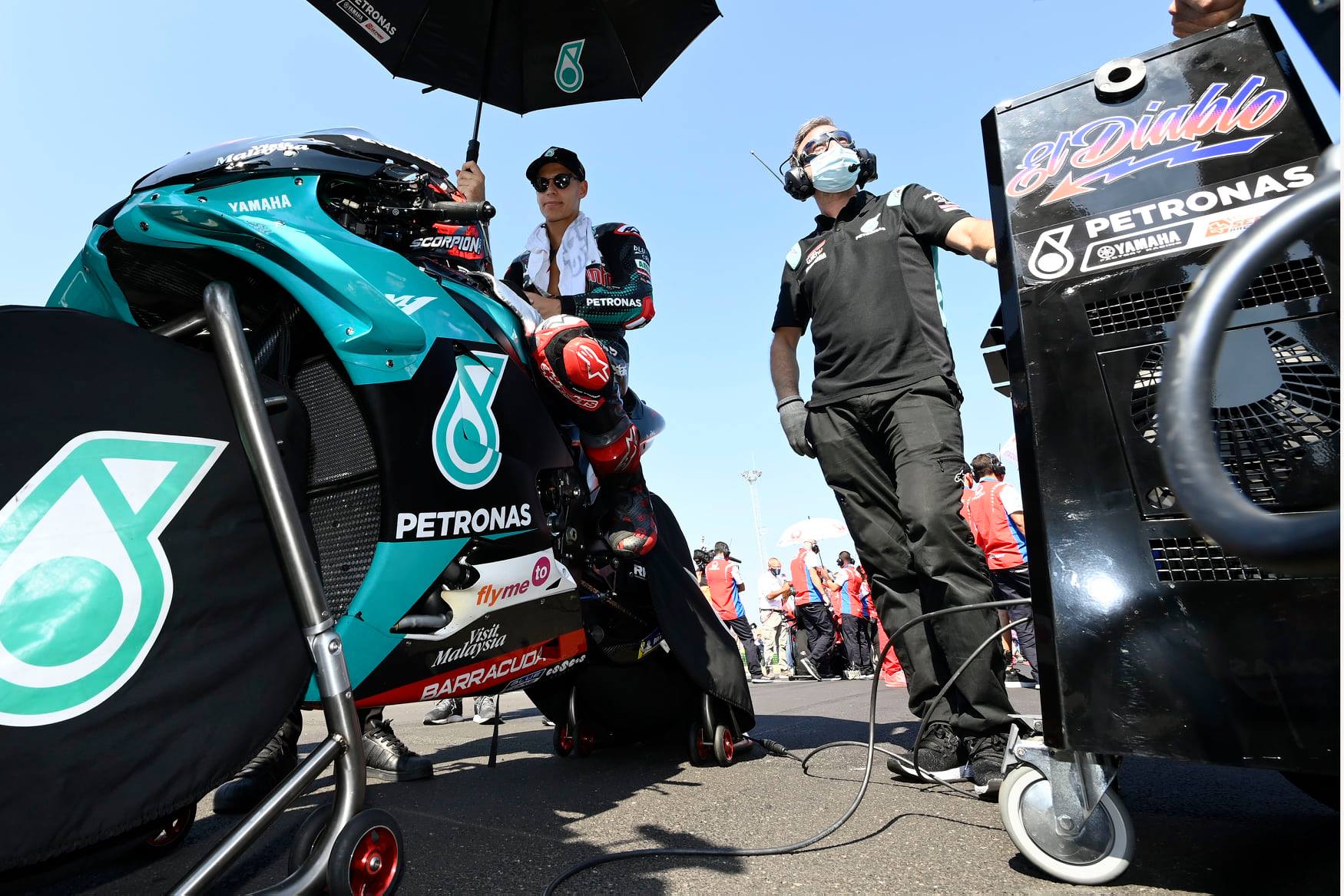 Dok je Vinjalesu bilo potrebno neko vreme da dovede gume do „radnih performansi“, Kvartararo se inicijalno „zaglavio“ iza njega, da bi konačno pretekao Španca u sedmom krugu. Međutim, „El Diablo“ je otišao preširoko u krivini 4, izletevši sa staze. Nakon posete boksu vratio se u trku da bi ponovo pao, zahtevajući previše od nedovoljno zagrejanih guma. Za njega, ovo je definitivno dan za zaborav.