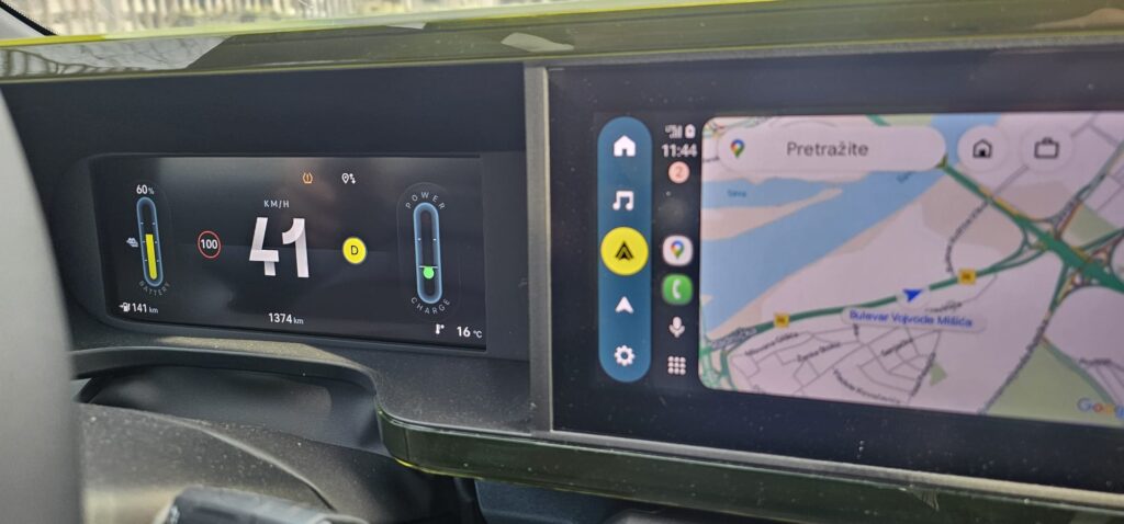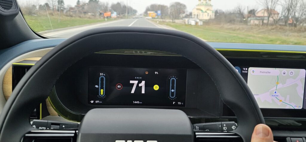 Velika beogradska saobraćajna gužva nije škodila našoj autonomiji. Naprotiv, zahvaljujući odličnoj „one pedal“ strategiji i rekuperaciji Grande Panda je skoro nije ni osetila, pa smo bar prema kompijuteru imali još 141 km autonomije pri polasku za Novi Sad.