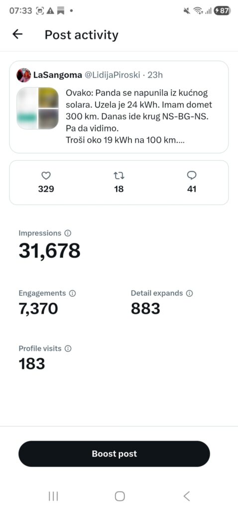 Da zanimanje „naroda“ postoji za ovu temu, potvrđuje i jedan privatni X post @LaSangoma o vožnji Fiat Pande na struju, napunjene isključivo iz kućnih solarnih panela.