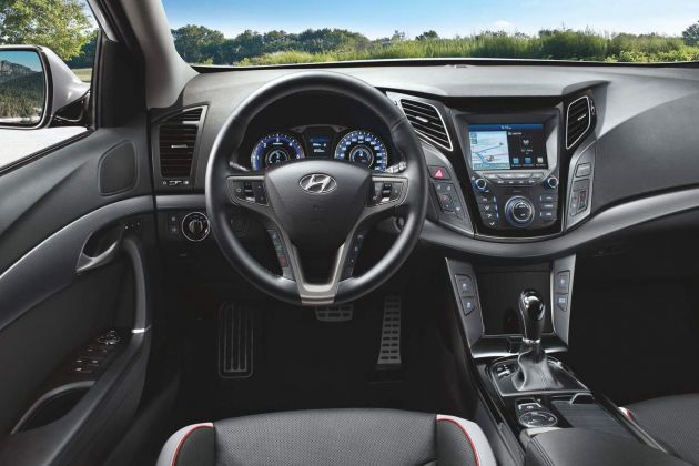 Osveženi Hyundai i40 je dostupan sa enterijerom u dve boje: „Merlot Red“ (crvene) i kombinacijom sive i crne boje, a kabinom dominira koža. Tu su i novi paneli na vratima i sjajni metalik detalji na komandnoj tabli.