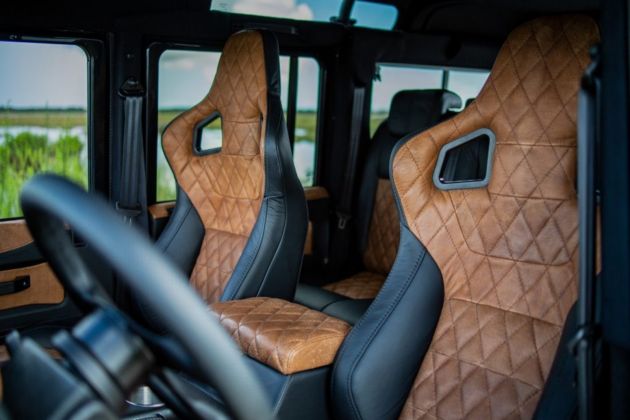 Kada je reč o enterijeru, tjuning kompanija se odlučila za kožu u dve boje koja prekriva gornji deo komandne table, panele na vratima, sedišta i naslone za ruke. Takođe, tu je i infotejnment sistem sa ekranom smeštenim na centralnoj konzoli, USB portovi, bežični punjač za telefon, JL Audio sistem i slično.