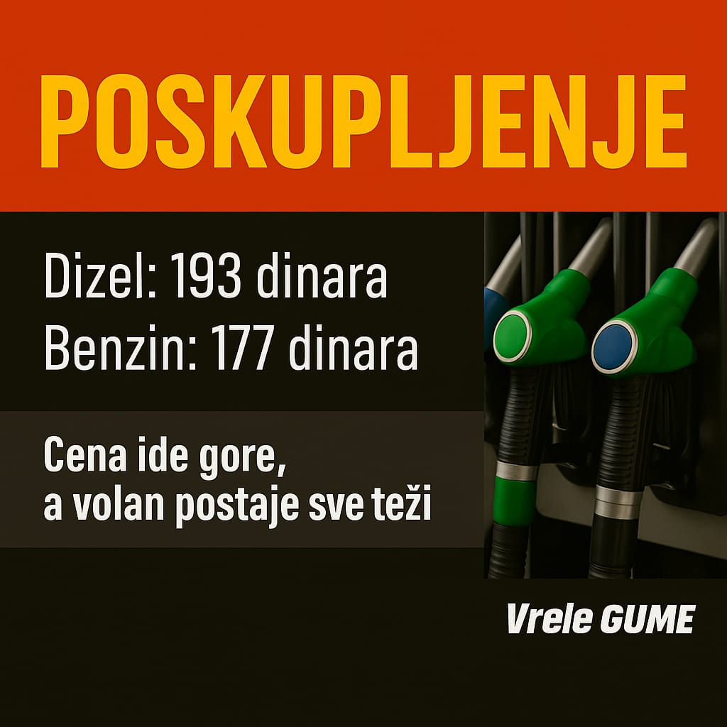 Litra evro-dizela sada košta oko 193 dinara, a benzin 177 dinara. Poskupljenje dolazi svega nekoliko dana nakon što su Sjedinjene Američke Države uvele sankcije Naftnoj industriji Srbije (NIS), koja je pod većinskim ruskim vlasništvom.