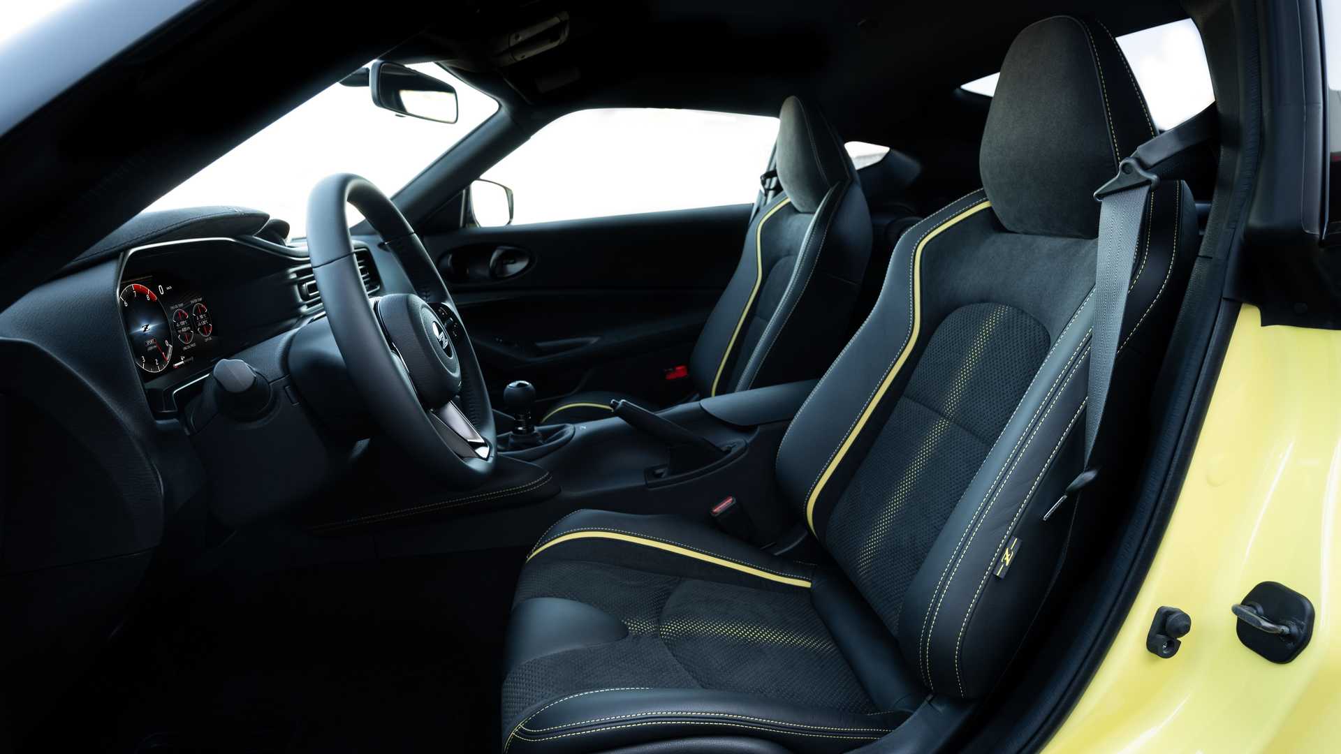 Sedišta su presvučena mešavinom alkantare i kože, sa žutim šavovima koji su preneseni i na obruč volana, ručicu menjača i centralnu konzolu. Poput prethodnika, Nissan Proto Z ima samo dva sedišta.
