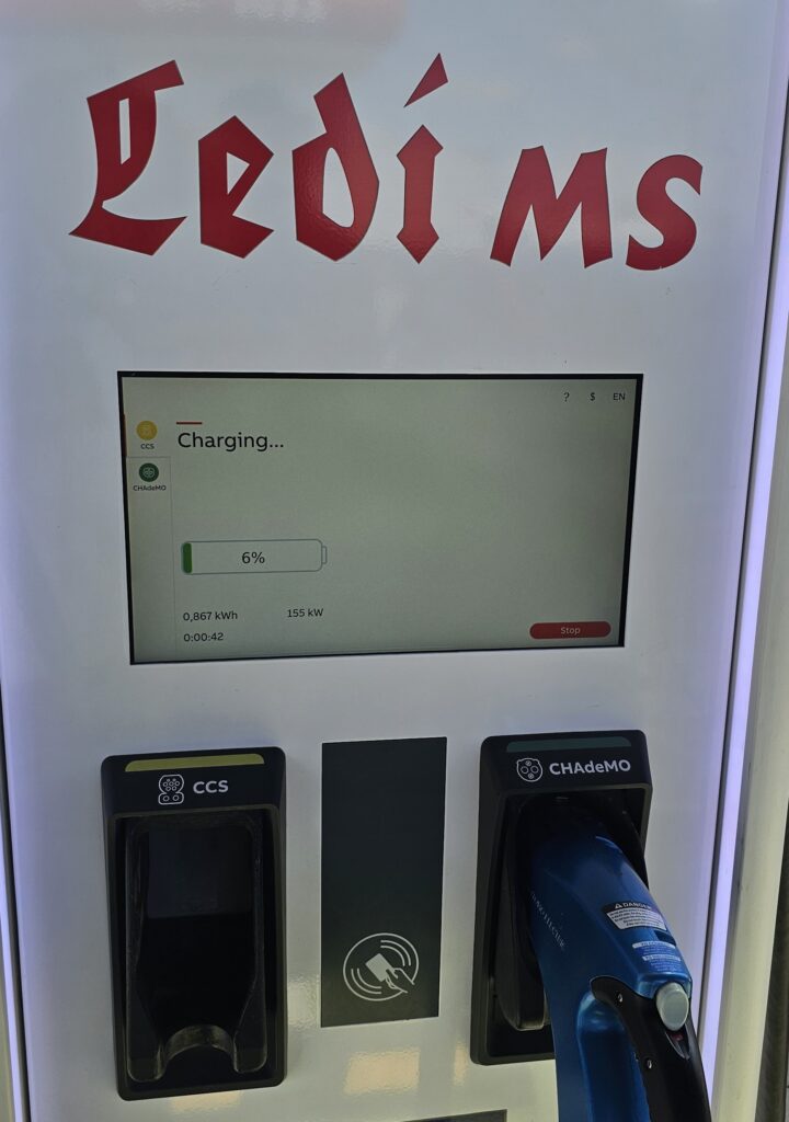 U ovom slučaju, scenario je bio potpuno drugačiji. Na brzom DC punjaču (200 kW) Ledi-MS u Novoj Pazovi, automobil se za oko dvadeset minuta dopunio za približno 400 kilometara vožnje. Brzina punjenja je varirala od 170 kW (baterija 5%) do 25 kW (baterija 97%) . Cena takvog punjenja, na bržoj i skupljoj infrastrukturi, iznosila je oko 4000 dinara. Plus odličan espesso u luksuznom salonu-čekaonici za 50 dinara.