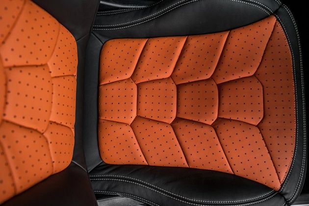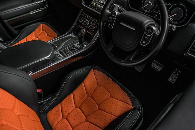 Kada je reč o enterijeru, ljudi iz kompanije Kahn Design su kabinu ovog modela učinili još luksuznijom, iako za to nije ni bilo potrebe. Naime, sada se u kabini ističe perforirana koža na sedištima u jarko narandžastoj boji sa šablonom šestouglova, kao i pragovi od nerđajućeg čelika i aluminijumske pedale.