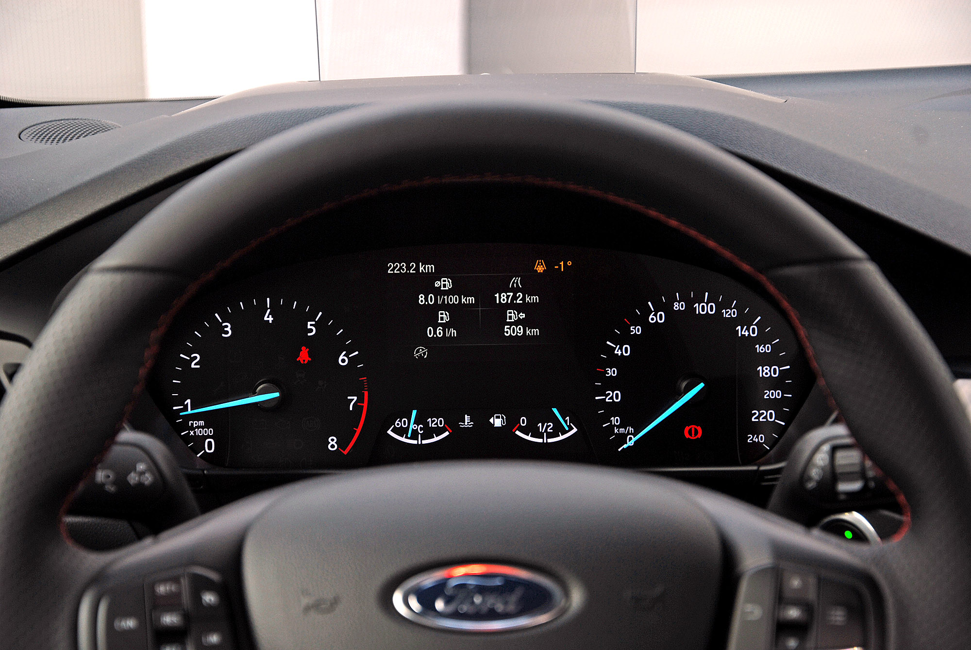 Više u Focusu nema one šume prekidača i tastera kako na centralnom grebenu tako i na upravljaču. Instrumenti su pregledni i lako čitljivi a „head up“ displej je vrlo, vrlo koristan sa mogućnošću serviranja navigacione mape, informacija sa infotejment sistema i najbitnijih saobraćajnih znakova.