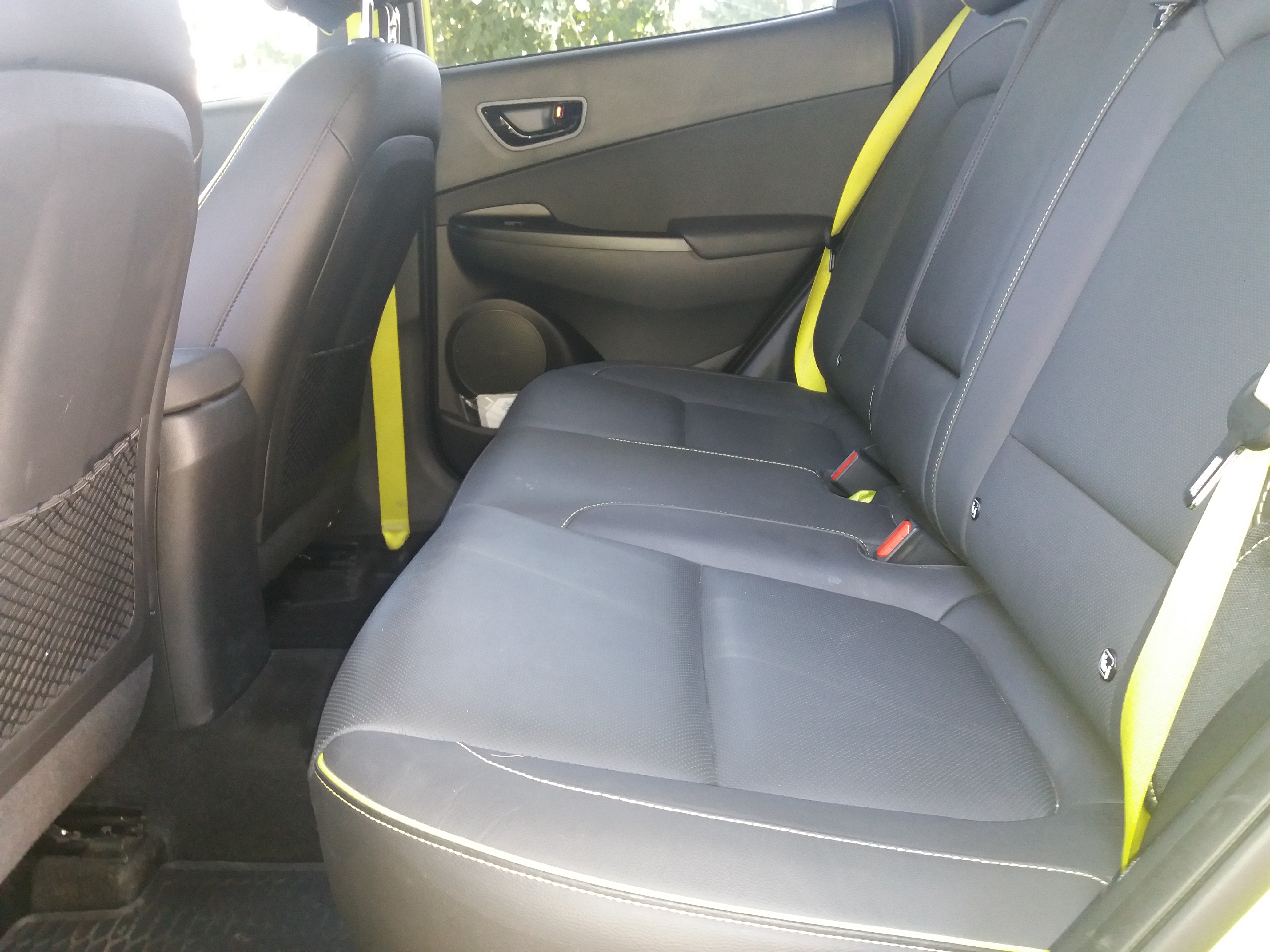 Sedišta, pogotovo prednja, su dakle vrlo udobna, ali se ponuđenom prostoru  može štošta zameriti. Kada se vozač prosečne visine savršeno namesti, a suvozač dodatno malo opusti kako to obično urade naši saputnici napred, na zadnjoj klupi ne ostaje previše mesta za odrasle putnike. Naravno, sve to u odnosu na očekivanja u datom segmentu. Ovde je Kona u poređenju sa većinom konurenata nešto lošija. Ipak, to je i dalje sasvim dovoljno u odnosu na popularne modele iz B i C klase.