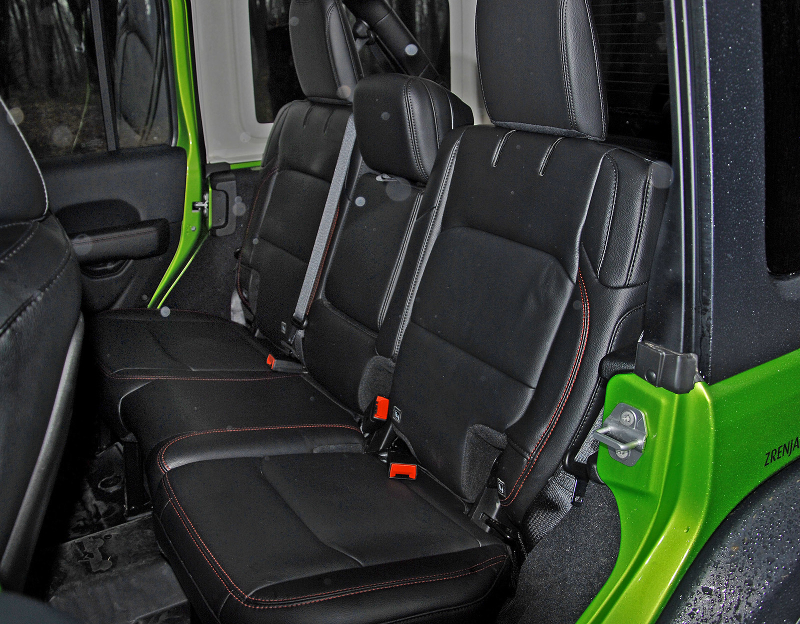 Montažno/demontažni plastični krov je sada izrađen od lagane poliuretanske pene ili nekog sličnog materijala kako bi bio lakši ali na dodir deluje brutalno jeftino za automobil ovog stila i cene pre svega. Zahvaljujući za 6 cm produženom međuosovinskom rastojanju, u kabini a posebno na zadnjoj klupi ima mnogo više mesta za kolena i noge putnika uz obaveznu napomenu da je zadnja klupa tek nešto udobnija od klupe. Ipak za standardne Wranglera, ona je sada kao iz rajskih odaja da je izašla. A mislio se i na mlade generacije.
