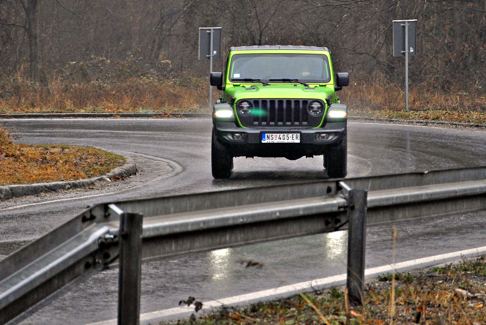 Upravljanje je lako i jednostavno a upravljač prijatan, moderan i onako terenski moćan, ne previše precizan. Ipak ima i nekih stvari kojima nisam zadovoljan. Pre svega zvučnom izolacijom. Iako je naš Wrangler Rubicon opremljen moćnim Mud kramponkama, zvučna izolacija bi neizostavno mogla i morala biti bolja. Tanka stakla, očigledno slabije izolovano podvozje i veliki koeficijent otpora vazduha prouzrokuju vrlo mnogo hučanja i buke koja ne dolazi iz motorskog prostora već stiže od nazad iz prtljažnika i zone zadnjih sedišta. Ima još… Iako je sve moderno i ušminkano, detalji eneterijera su prilično svilenkasti, nema tu više ni traga onom robusnom, jednostavnom i čvrstom osećaju pod rukom. Bojim se da ovaj kompromis sa fenserajem ne otera one najžešće ljubitelje znaka. Teško je svima ugoditi.