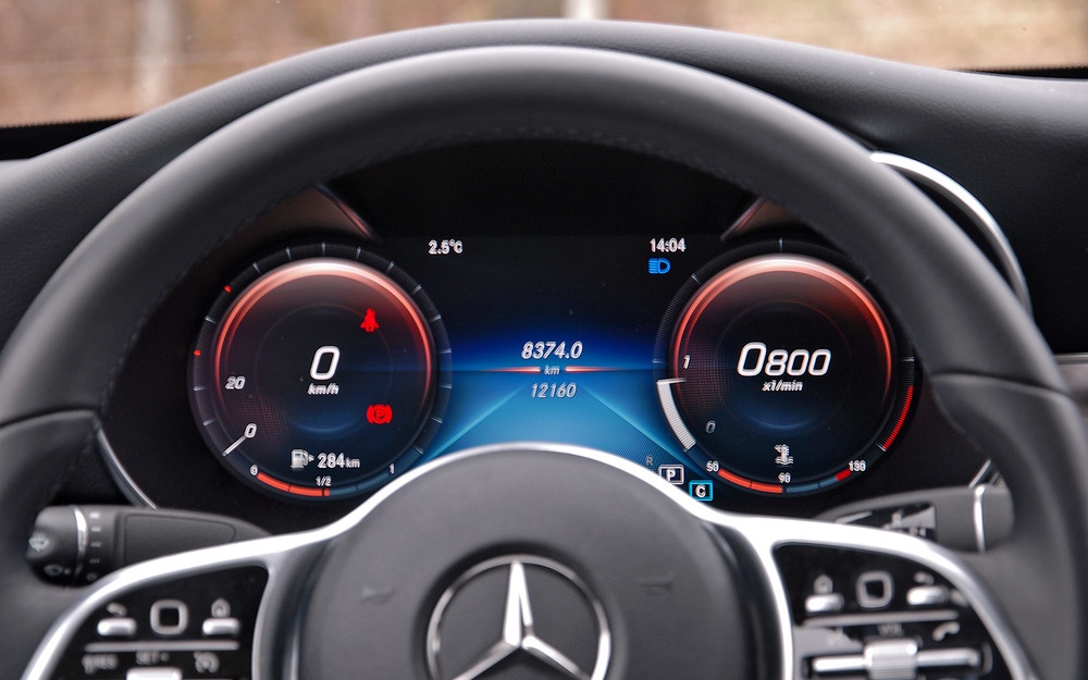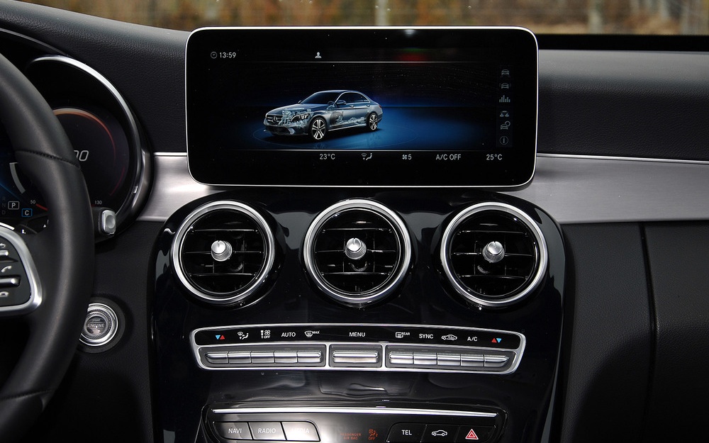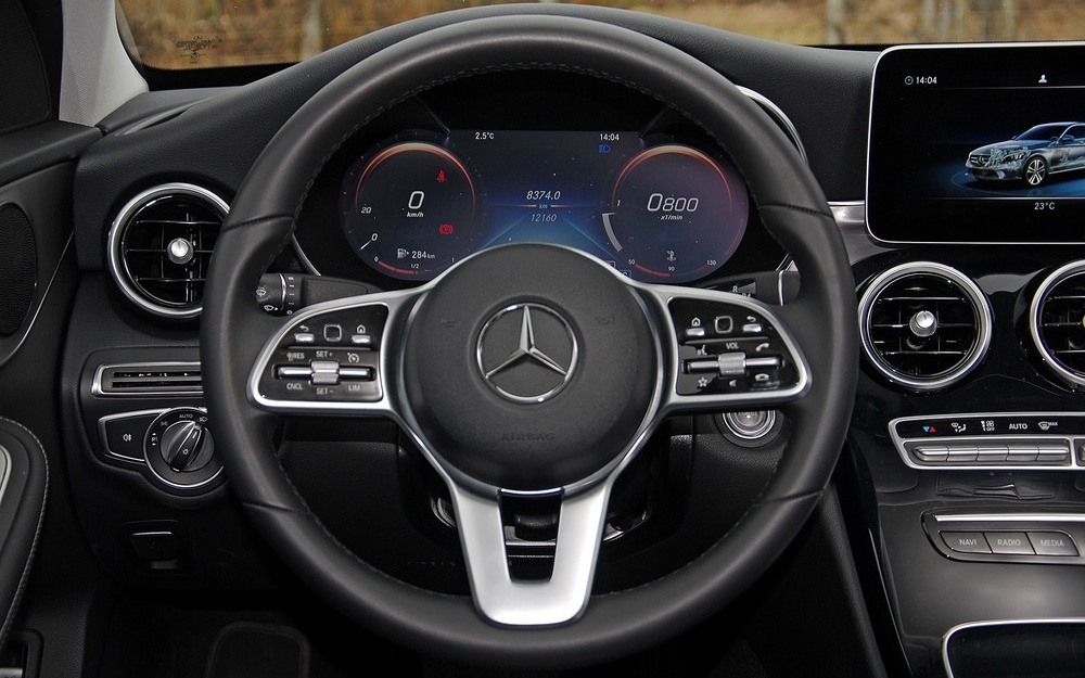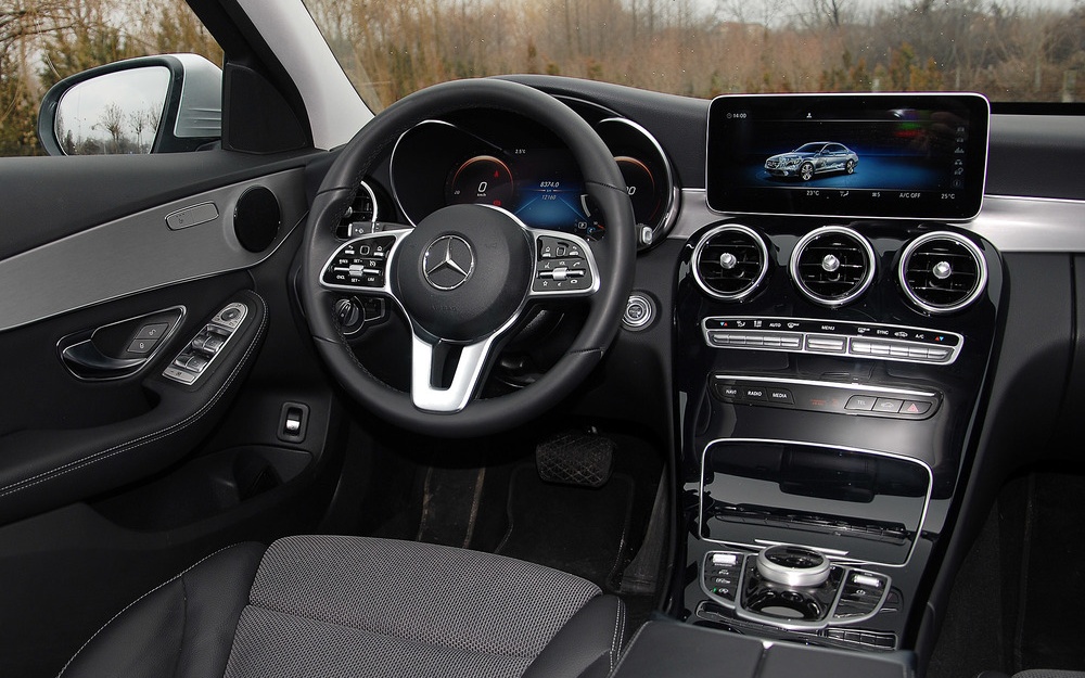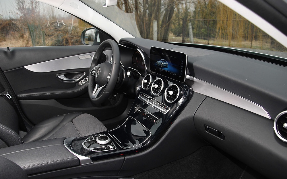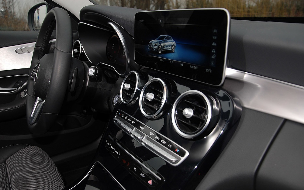 U našoj testiranoj C klasi imali smo 7.0-inčni ekran infotejnment sistema (može da bude i 10.25˝). Ekran je dosta manji i prostiji od onoga u A klasi, na primer. Tu je i veoma pregledna i funkcionalna digitalna instrument tabla, sa jasnim bojama koje se menjaju u zavinosti od izabranog stila vožnje. Upravljanje i jednim i drugim ekranom omogućeno je sa revidiranog tačped multifunkcionalnog volana i sa centralne konzole. Sam volan je podesiv i vrlo prijatan za rukovanje.