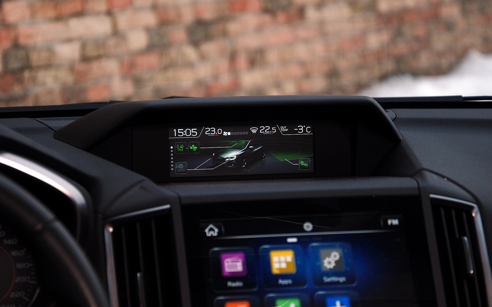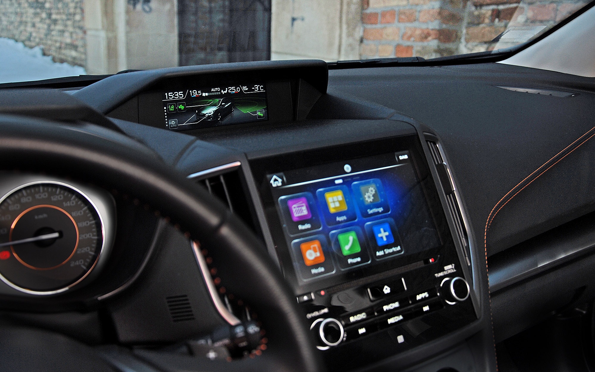 Sa vozačke strane bih ga još više pohvalio. Ovo je narode primer kako se organizuje upravljačko mesto. Izvanredna povišena pozicija sedenja nudi dobru preglednost i osećaj potpune kontrole vozila. Sasvim obična instrumentalizacija i krajnje pojednostavljen infotejment urađeni su takođe po meri onih koji vožnju smatraju privilegijom i još uvek je razlikuju kao radnju od proste upotrebe kakve mobilne aplikacije. Sedišta su na idealnoj visini, ni niska ni visoka već baš tako da se u njih samo sklizne. Solidno su udobna ali i tvrda kada treba održati telo na off road ludovanju. Manje-više sve ovo važi i za suvozačku poziciju uz napomenu da nedostaju sve više tražene ostave i prostori za odlaganje sitnica. Da ne zaboravim, XV se serijski isporučuje sa EyeSight sistemom praćenja vožnje, koji uz pomoć digitalnih kamera snima dešavanja na putu i okolini, upozorava vozača na opasnosti i po potrebi i automatski koči.